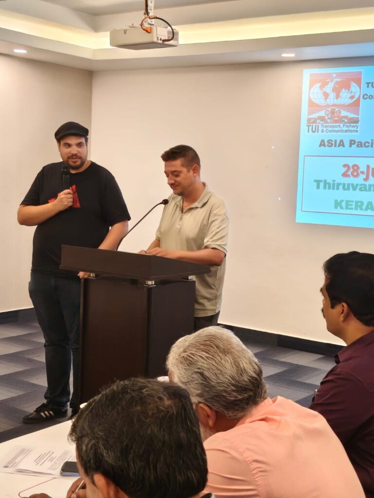 AIRTWF General Secretary presenting a memento to the General Secretary. TUI(TPFC) Com.Mathew on 21-02-2025 in Istanbul.