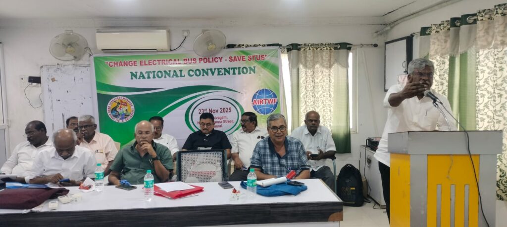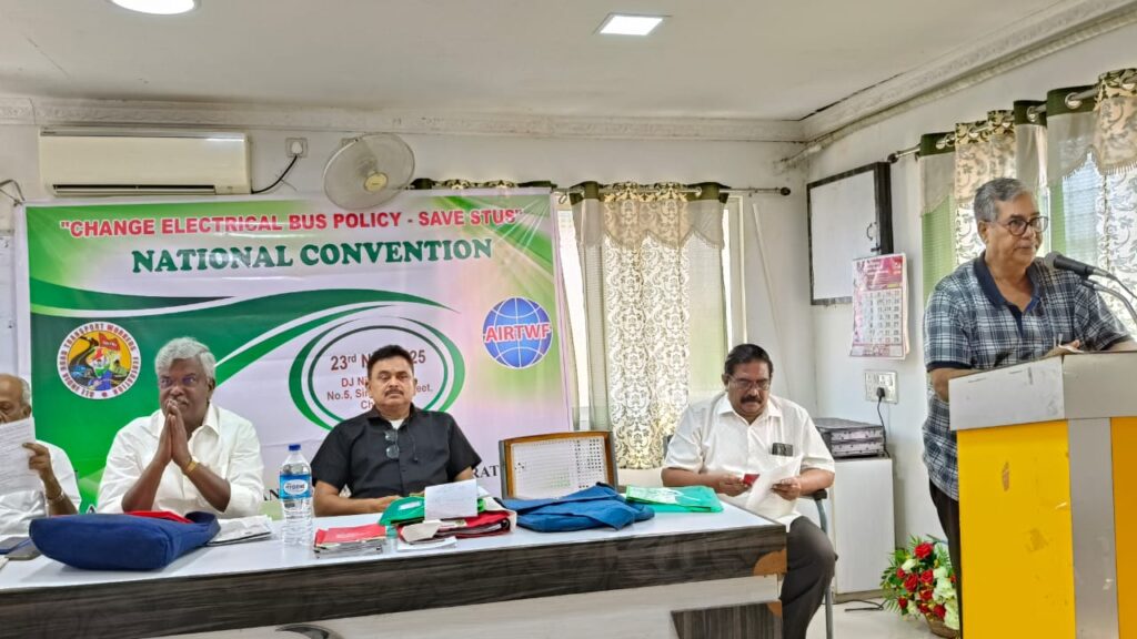 STUs National Convention held on 23.11.2025 at Chennai. Com Karumalayan Preside over the convention. Com. A. Sondourajan inaugurated the convention . Com. A. Nainar places draft reports, leaders from AITUC and TTSF participate in convention, VSRao spoke on Electric Bus. Concluding speech given by Jiban Saha. 19 corporations from 9 states joined the National Convention about 75 delegates participated.